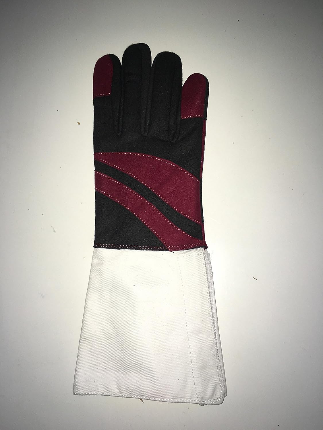 Our washable glove (sold individually for the fencing hand only) is made not with leather, but with synthetic suede. The man-made fabric allows excellent feel for the fingers yet is durable. Its outstanding advantage is that it remains soft after long use, unlike leather which hardeners as it absorbs sweat, and does not come to reek. It is best washed by hand (care instructions included).This synthetic suede glove comes with all the fine design features of its leather cousins: padded back of the hand; double-layer of thicker leather over thumb, forefinger and heel of palm to resist wear; adjustable hook and loop closure, streamlining cuff that conceals and protects body cord, hugs jacket sleeve and limits target exposure. Instead of a gnarled stump of leather that has to be subdued before it can be of any use, The Washable glove is a welcome sight when you open your bag, a pliable glove at the ready. Right or left handed. See instructions for determining your right size. Sold individually.