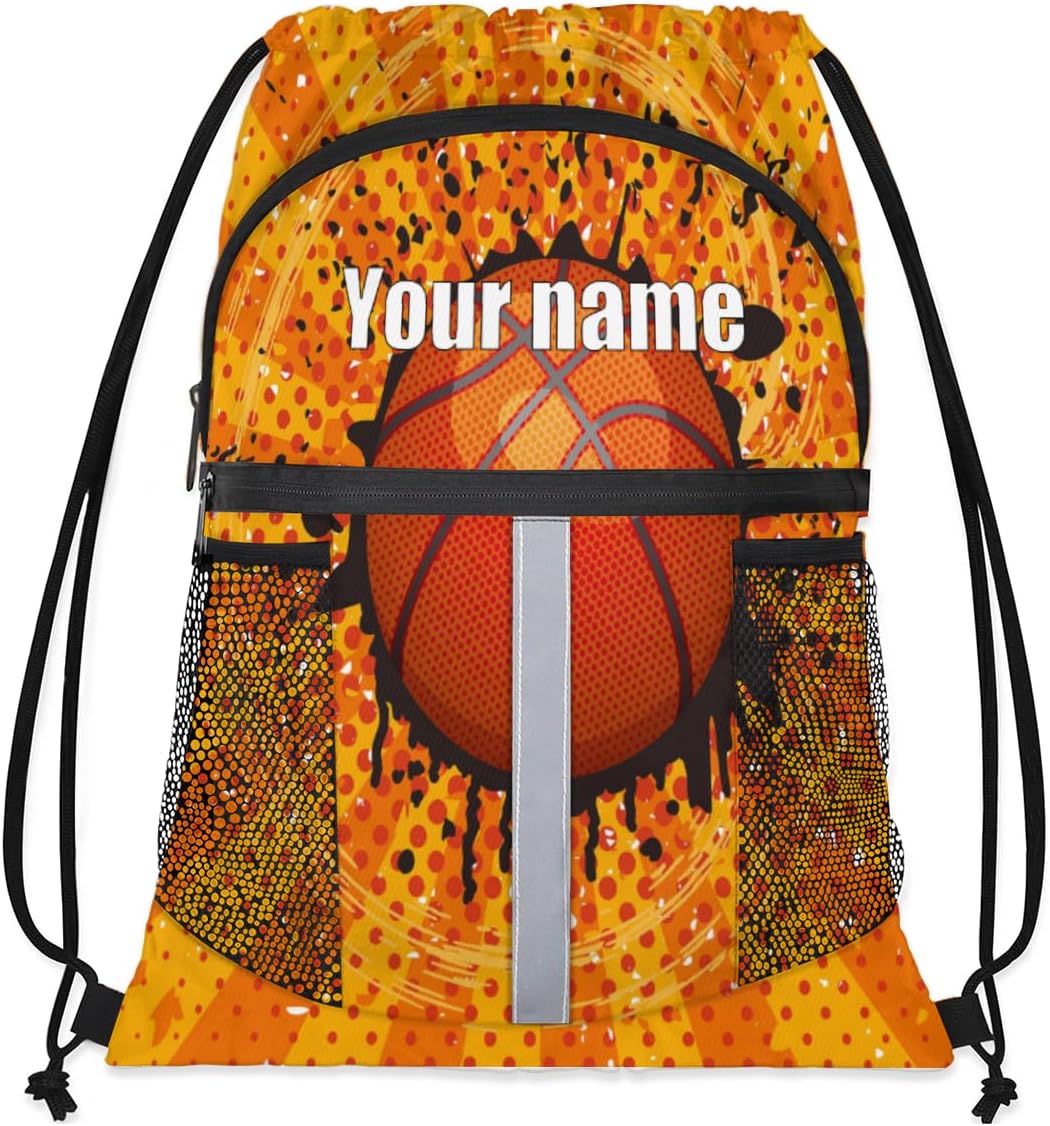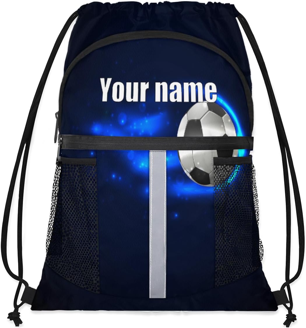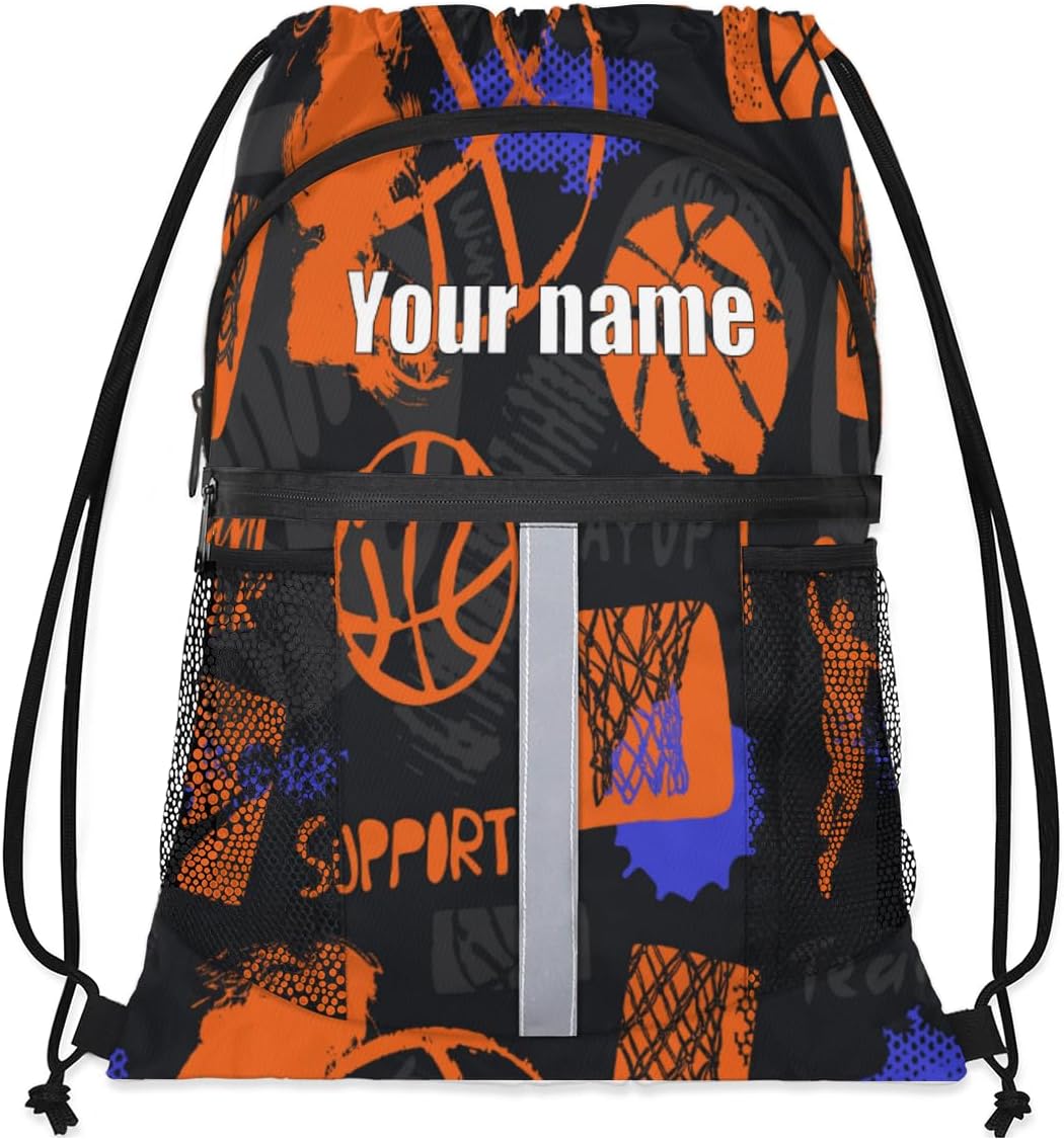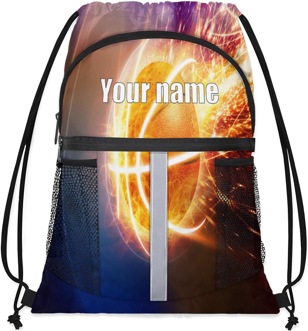 Personalized Drawstring Gym Bag Custom String Backpack Lightweight Cinch Sacks Backpack Men Women Travel Sports String Bag for Camping Beach Swim Yoga Outdoor Sports Why choose our drawstring sports gym backpack? Vertical reflective strips can enhance visibility at night or in the dark,bringing you additional safety. Using adjustable ropes,it is easy to tighten the opening and prevent items from falling.There are 2 convenient handles that can be carried or hung anywhere. Foldable,adjustable,lightweight.The drawstring backpack can accommodate daily items such as basketball,sportswear, shoes,towels,books,etc;The mesh bags on both sides allow you to place a kettle and an umbrella;The large zippered pocket in the front can hold items such as iPads and sunglasses;A small zippered front pocket can accommodate valuable items such as wallets,keys,and other small items. Suitable for carrying around in various occasions such as gyms,sports,travel,dance,yoga,camping,hiking,swimming,running,cycling,etc. This is a perfect gift choice for men women who love sports and fitness. How to clean: can only be hand washed. What will you get: 1 *waterproof drawstring backpack for women men.
