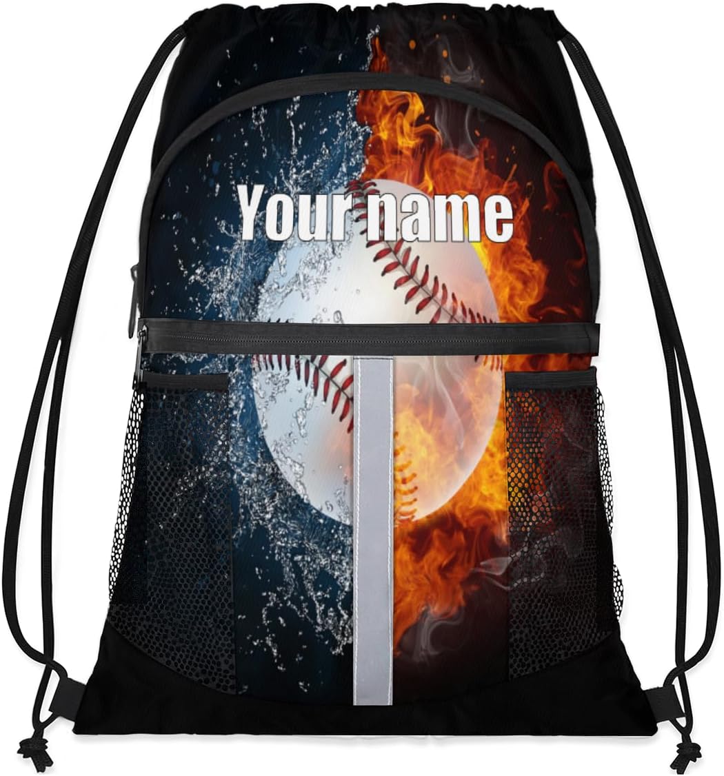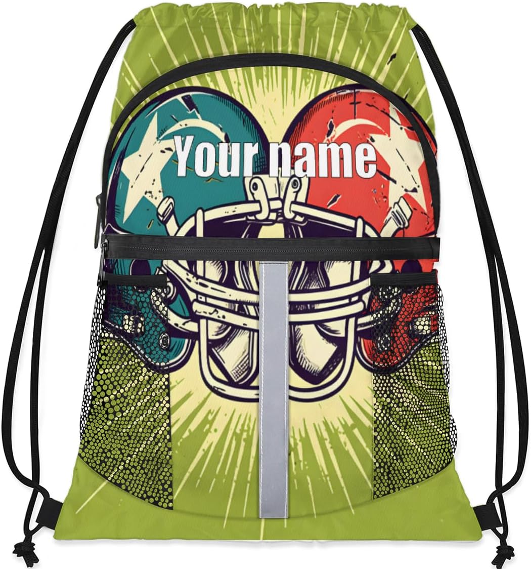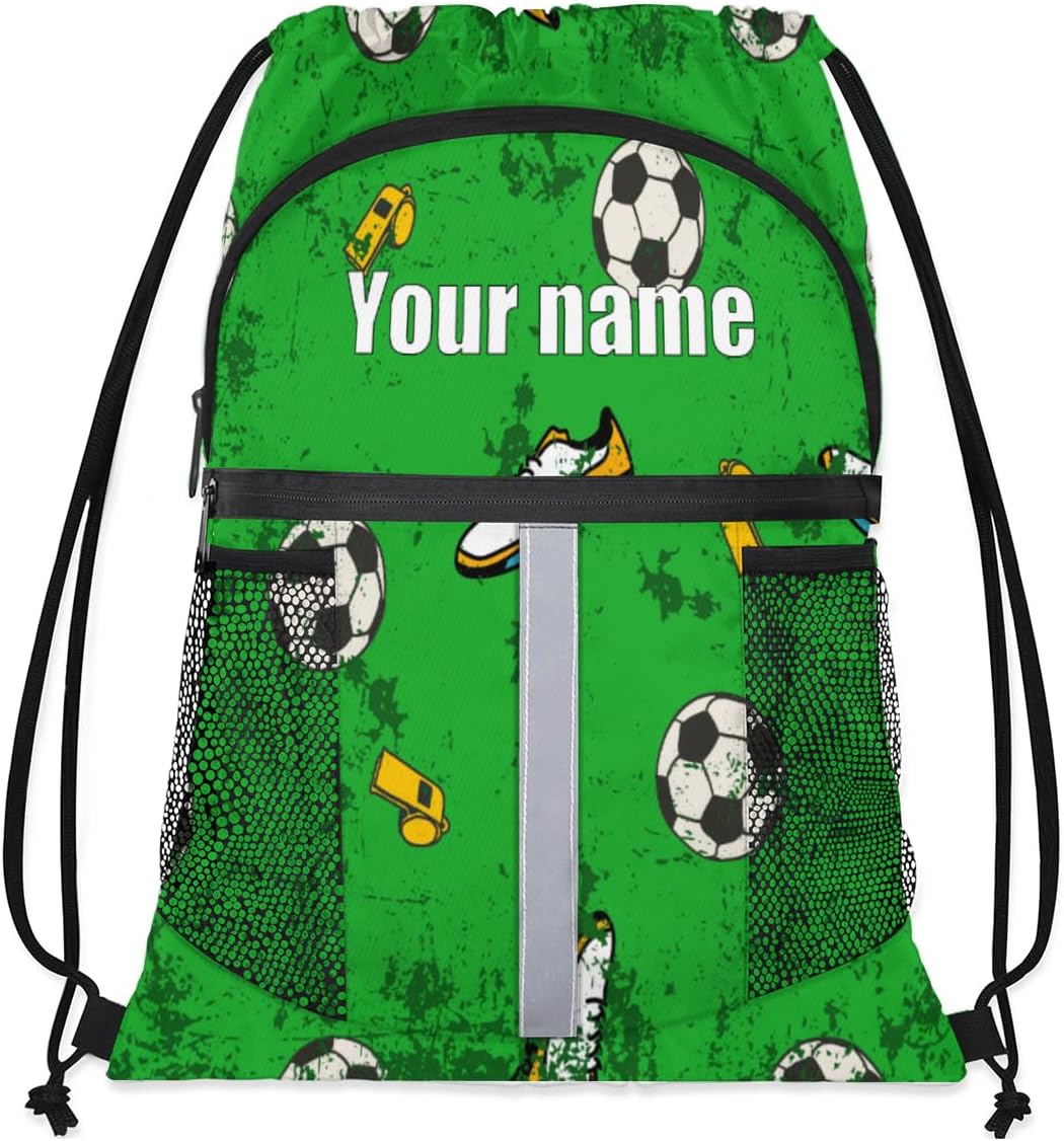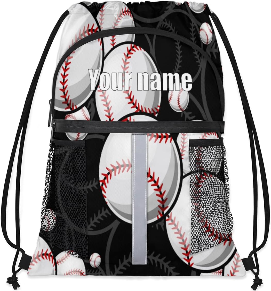 Personalized Drawstring Gym Bag Custom String Backpack Lightweight Cinch Sacks Backpack Men Women Travel Sports String Bag for Camping Beach Swim Yoga Outdoor Sports Why choose our drawstring sports gym backpack? Vertical reflective strips can enhance visibility at night or in the dark,bringing you additional safety. Using adjustable ropes,it is easy to tighten the opening and prevent items from falling.There are 2 convenient handles that can be carried or hung anywhere. Foldable,adjustable,lightweight.The drawstring backpack can accommodate daily items such as basketball,sportswear, shoes,towels,books,etc;The mesh bags on both sides allow you to place a kettle and an umbrella;The large zippered pocket in the front can hold items such as iPads and sunglasses;A small zippered front pocket can accommodate valuable items such as wallets,keys,and other small items. Suitable for carrying around in various occasions such as gyms,sports,travel,dance,yoga,camping,hiking,swimming,running,cycling,etc. This is a perfect gift choice for men women who love sports and fitness. How to clean: can only be hand washed. What will you get: 1 *waterproof drawstring backpack for women men.