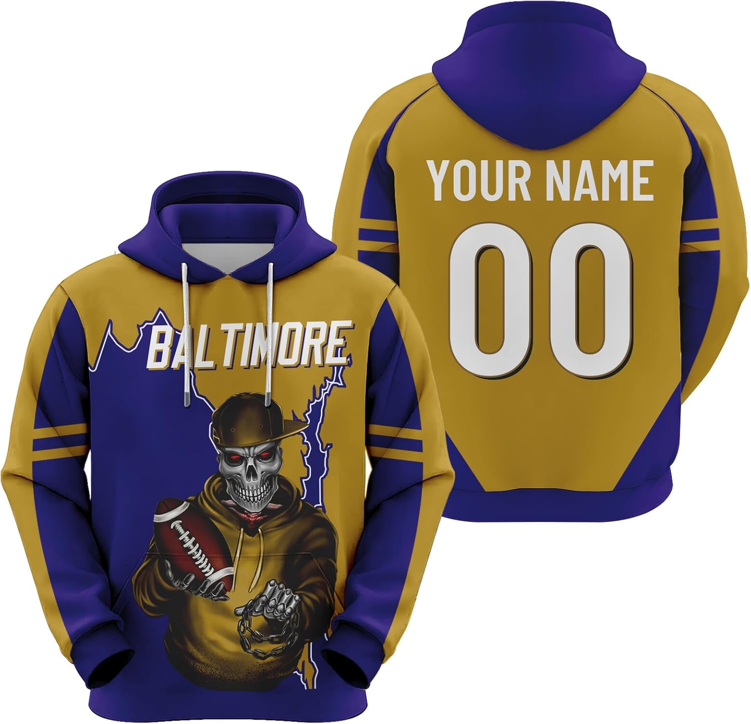 Introducing our custom football hoodie, a perfect combination of personalisation and high quality. This custom football hoodie is made of polyester fabric, with a moderate hand feel. Made of polyester fabric, it is not easy to shrink, pill, or deform, making it comfortable to wear. We strictly regulate the production process of hoodies, with exquisite workmanship, fine needle and thread, and neat threading.This hoodie features a comfortable hood and split kangaroo pockets, with a drawstring hood design that can be easily adjusted.Styled in the team's primary colors, this custom football hoodie also features a novelty skull element on the front,and you can customize the hoodie by adding a personalised name and number.Suitable for sporting events, football games, travelling, Christmas, Thanksgiving parties ,daily wear, strolling, home wear and a variety of outdoor occasions, this custom football hoodie is also a practical gift option for family, friends and football enthusiasts - order your customized football hoodie today!