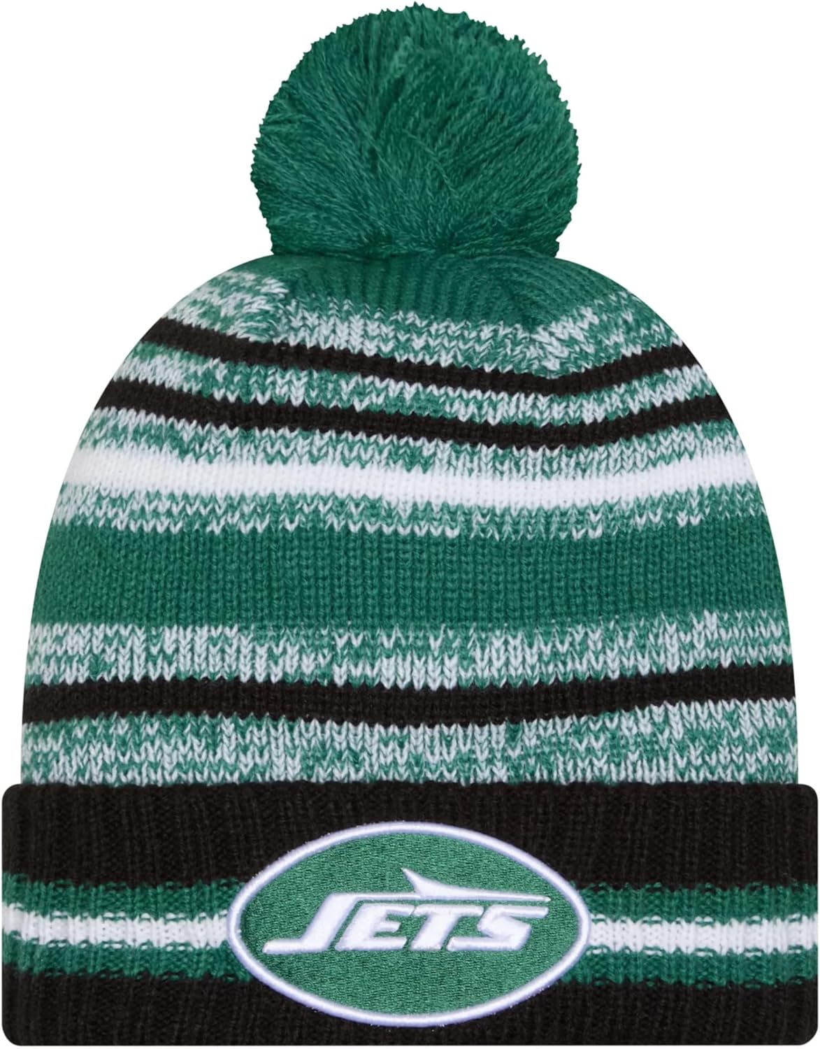 Sport your Favorite Team Pride, keep warm, and make a fashion statement with this great looking beanie hat with Pom from New Era. This NFL Knit from New Era is a cuffed knit with an embroidered logo at the front, stitched New Era flag at the wearer's left side, and a plush pom at the top.