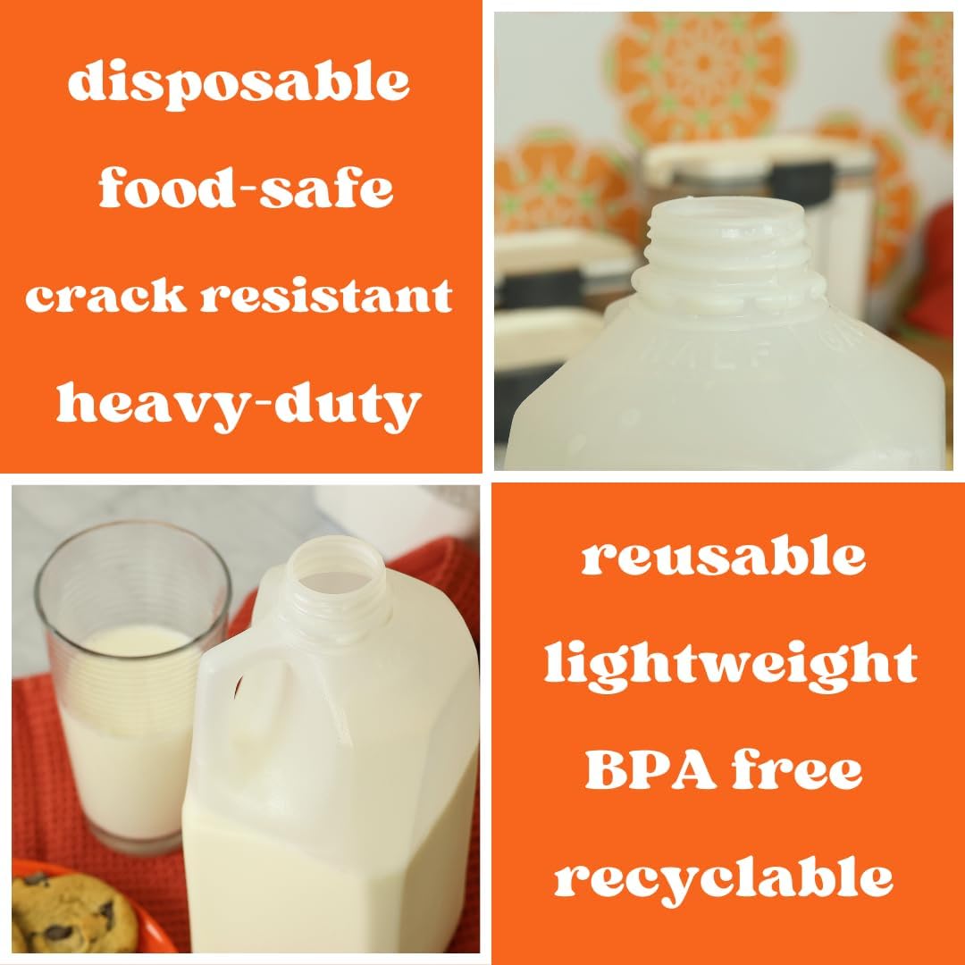 Do you purchase shampoo, salad dressing, or other lotions/liquids in bulk? These 64 ounce bottles make it easy to portion your 5-gallon pail of honey into smaller, easy-to-use quantities. This large drink container is easily transportable with its secure cap and sturdy handle. Holding 2 quarts of fluid, this half gallon plastic jug is perfect for storing even dry foods such as rice or beans in your pantry. Sturdy plastic bottles do not crack easily and can be reused multiple times. Screw On caps are tamper-evident for first use. Food grade and BPA free, the semi-transparent empty half gallon carton is made of flexible HDPE. Take fresh-squeezed lemonade, homemade punch, or adult beverages with you on your picnic. Easy to transport! 64 ounce empty, clear juice bottles are ready to go wherever you do! Half gallon water jug makes it easy to serve water at the beach.