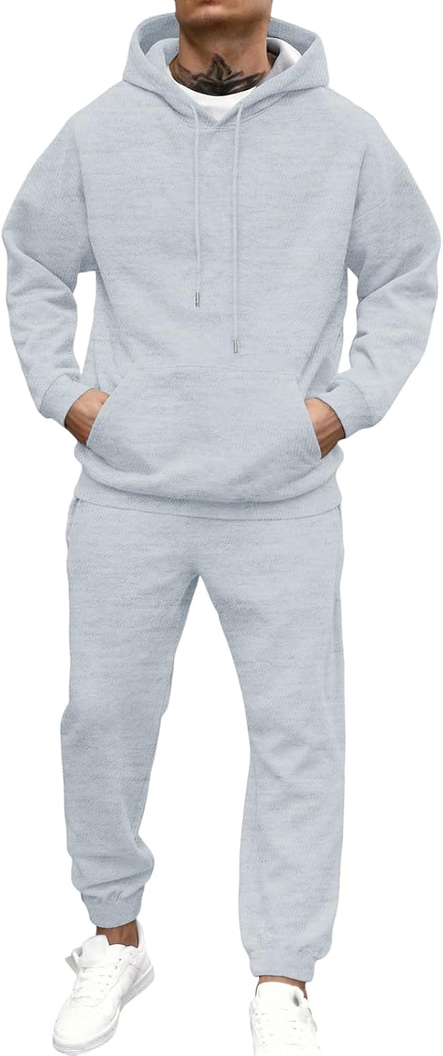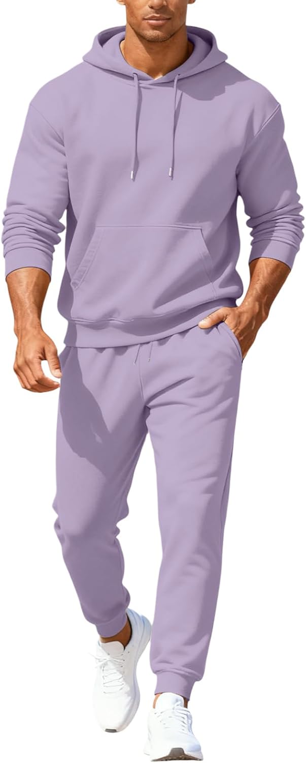 Elevate your casual wardrobe with this mens 2 piece sweatsuit set—the perfect blend of comfort and style. Crafted from soft polyester, this matching hoodie + sweatpant set works as lounge wear for men, jogging sets, or everyday athleisure. Available in multiple colors,it features a relaxed fit that’s suitable for lounging at home, running errands, or casual outings. The drawstring details (on both hoodie and sweatpants) add adjustability, while the kangaroo pocket on the hoodie boosts practicality—ideal for men who want versatile, cozy men clothes sets outfits.