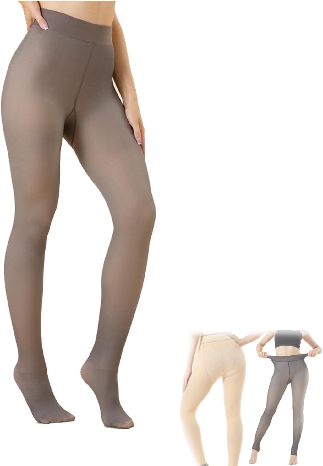 Product Description Name: Tighto Soft Lined High Waist Tights Color: Light/Medium/Deep/Light Khaki Material: Polyester fiber + spandex Weight: 7.8oz Package includes: 1/2pcs Leggings Notes: 1. Due to manual measurement, there is a certain error in the product size. 2. Due to lighting effects and shooting angles, there may be chromatic aberration in the product, please understand. 1