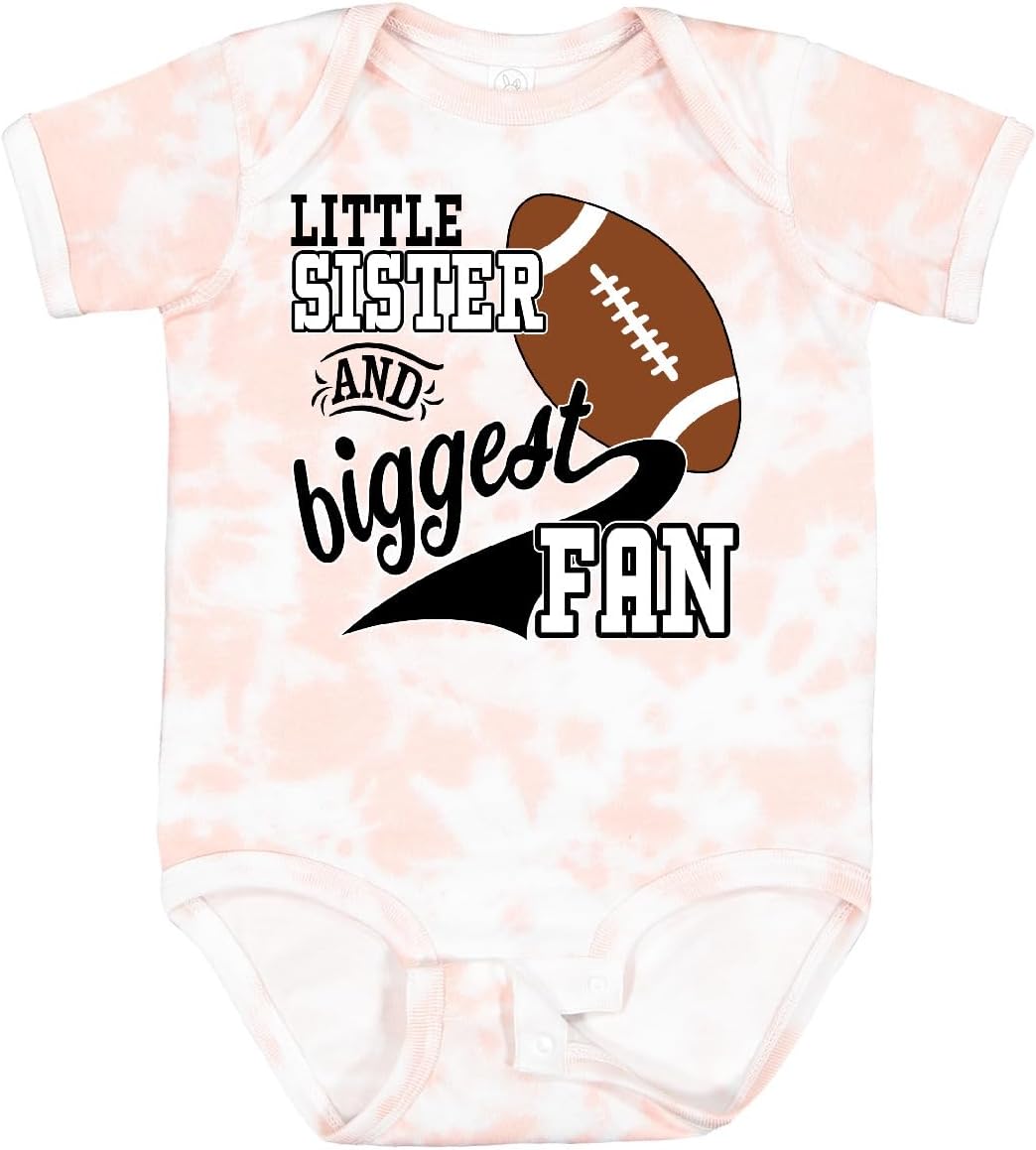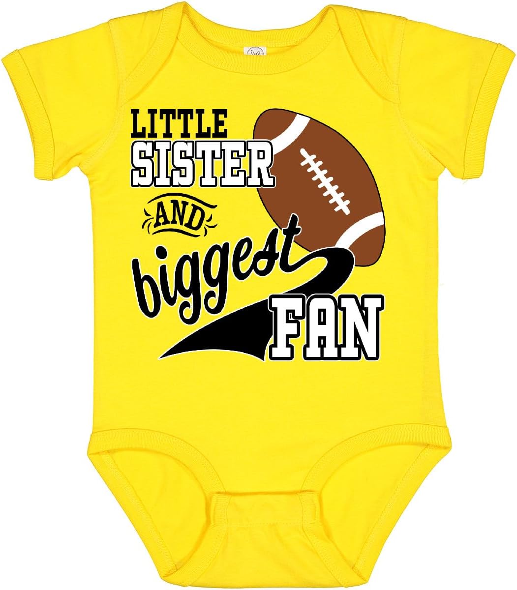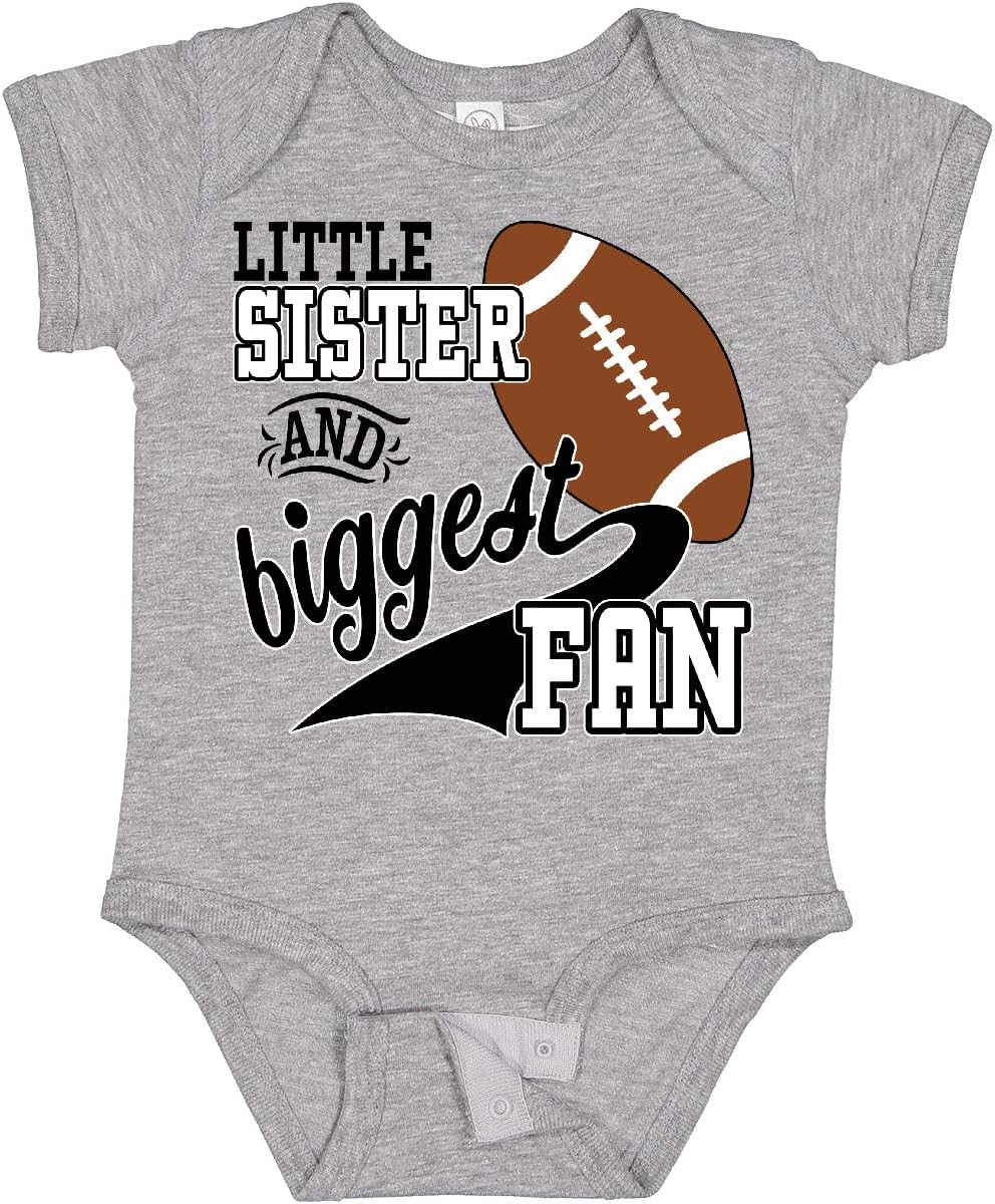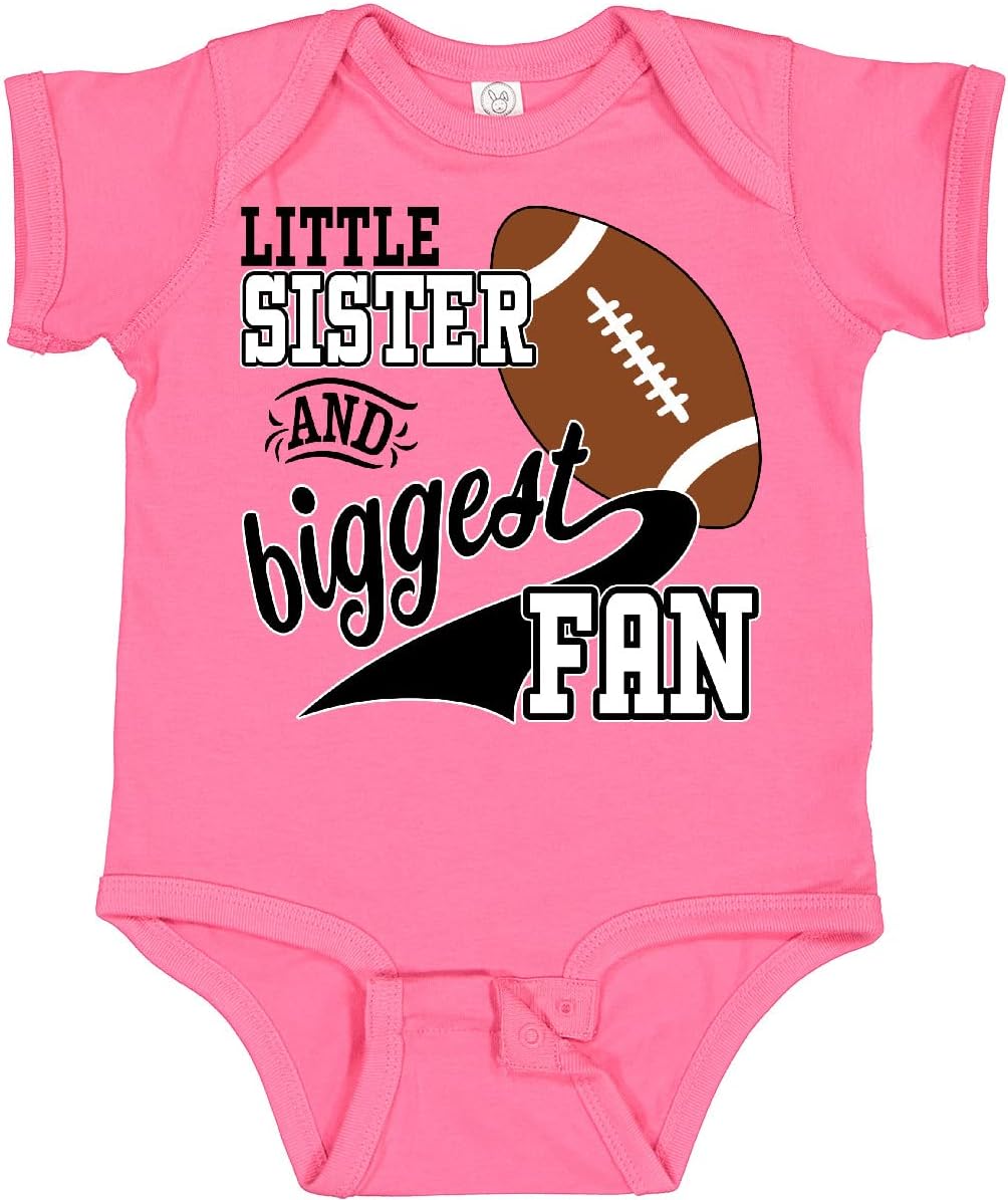 Who shows up to every game and cheers you on, encourages you, and keeps you motivated? Little Sister and Biggest Fan- football player Baby Bodysuit, perfect for the family and fans of football players.