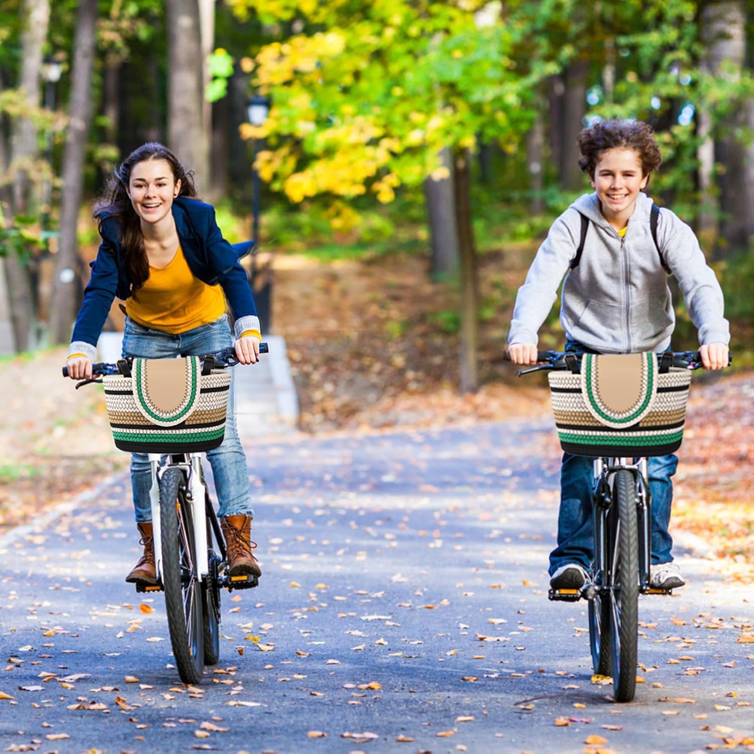 Are you still worried about not having a place to store your bike? Then look no further than Carvmpin charming bicycle basket set! The bike basket features a unique multicolor patchwork design that is lively, cute, and fashionable. The combination of PU leather and cotton rope creates a simple yet beautiful look.YOUR KID WILL HAVE AN ATTRACTIVE BIKE: Let your child give a personal flair to their favorite bike and boast the most beautiful bicycle in the neighborhood! GREAT COMPATIBILITY:【Product Dimensions】: The size of the bike front handlebar basket is 21cmx16cmx16cm/8.5inchx6.5inchx6.50inch, providing ample space for your belongings while not taking up too much space on your bike. ONE MINUTE for INSTALLATION. [Kid bicycle basket]adjustable belts for installation and undoing easily. [Kid Bell]Just tighten the screw with a screwdriver. [Streamers]Plug them into the handlebars. It's easy for kids to install them. Specifications:Material: This bicycle basket is made from soft and reliable cotton rope, providing a comfortable texture and long time use. A good gift for yourself, family and friends.Bike Basket*11 pair of leather straps. Suitable for various types of bicycles, whether road bikes or mountain bikes. It can be easily assembled and is convenient for storing items during your ride.