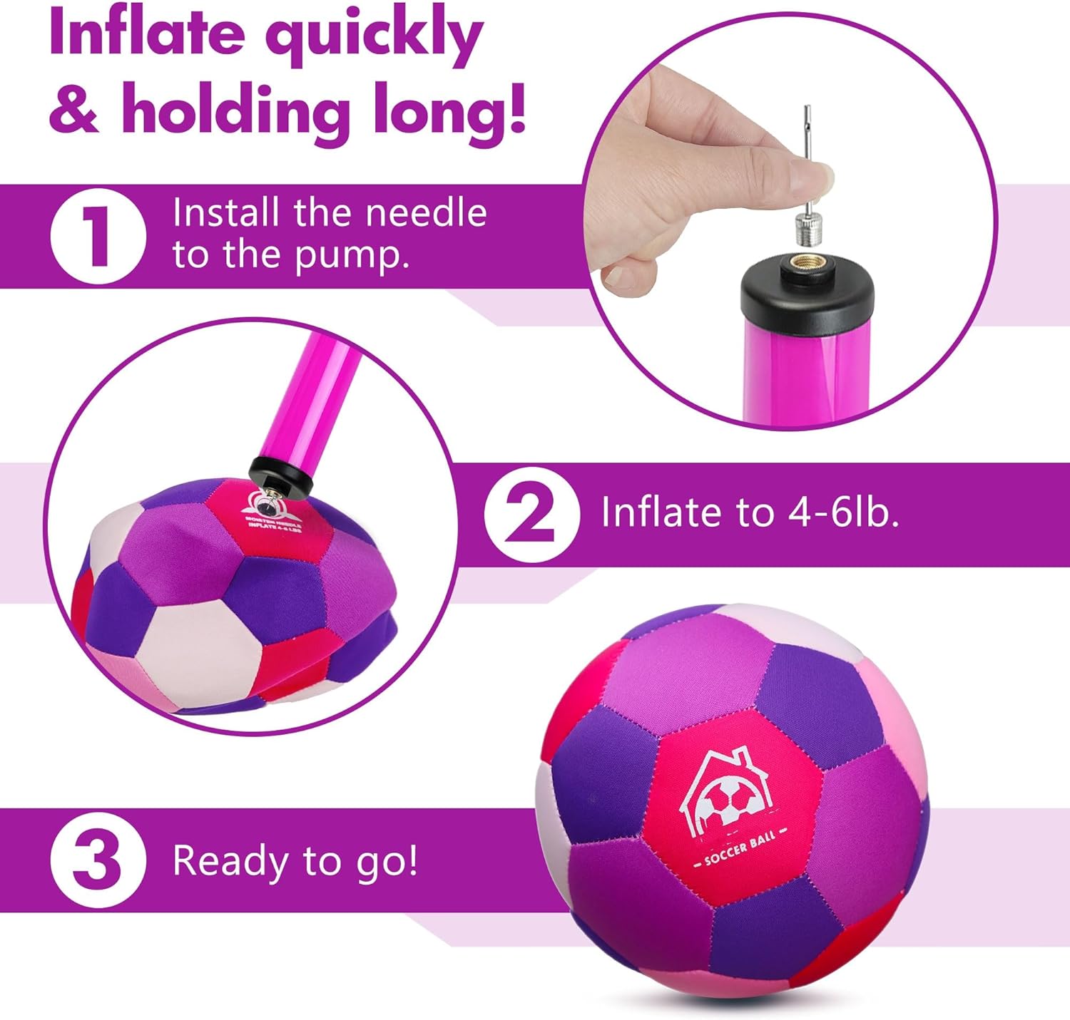 THIS IS THE REAL INDOOR SOCCER BALL: Differented from others with cheap 2-layer materials, AceVernine indoor soccer ball size 4, with upgraded 4-layer design, is much more durable and more long-lasting. Outer polyester and invisible stitching seams makes it passing 1000-time kicking tests. The foam in the second-layer makes it whisper-quiet and safe soccer ball in the house; Yarn wrapping inside and high-quality rubber bladder largely ensures the shape of the soccer ball for long time SAFE FOR YOUR HOUSE AND INDOOR PLANTS: This fabric and foam wrapped indoor soccer ball are soft and lightweight, ideal for kids ages 3+ to enjoy a game of soccer ball dribbling or juggling in the house. Soft polyester outer materials ensures a safe and gentle touch, minimizing injuries during play and without the risk of scratching on furniture or on walls. Perfect for any age and especially for kids 4-12 year-old barefoot kicks and worry-free passing around the house WHISPER-QUIET KICKING-BALL AT HOME: Since the second layers foam materials can absorb most of noise when kick or play with the indoor soccer ball, kids or soccer players can freely practice dribbling juggling or passing skills quietly at home while other families sleeping or working at home. Especially in rainy day, when kids feel boring at home, this indoor house ball must be the perfect option VIBRANT COLOR IS PERFECT AS GIFTS: Vibrant american style color-blocking, AceVernine unique colors sets this soft soccer ball being stand out from others and catching your eyes. This soft indoor soccer ball size 4 is ideal for boys teens kids children as birthday Christmas Easter gifts Don't get knockoffs of our soft house soccer ball: Our indoor soccer ball size 4 is designed with several soccer plays and little kids' parents, produced by a world-class soccer ball manufactory, and passed tests of Children’s Product Certificate to ensure it is compliant with USA regulations WHAT'S IN PACKAGE: 1x indoor soccer ball pink; 1x hand pump; 24hrsx after-sale service