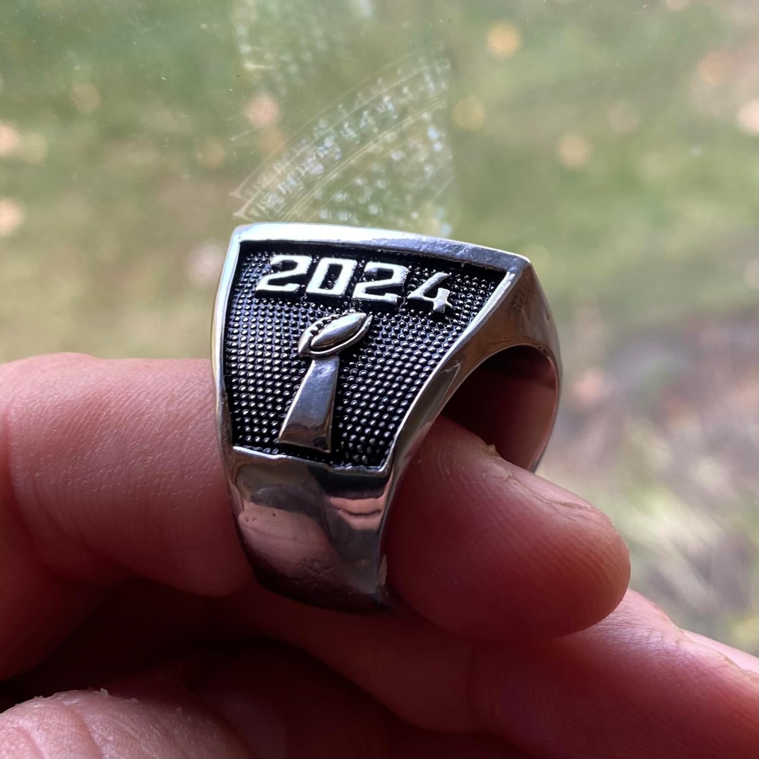 Take your victory to the next level with the 2024 Fantasy Football Champion Ring, the ultimate symbol of your gridiron dominance. This sleek and stylish championship ring is perfect for celebrating your league victory and reminding everyone who runs the fantasy world. Beautiful solid and heavy fantasy football championship ring for the 2023 - 2023 FFL season. Shiny silver tone ring adorned with clear stones.