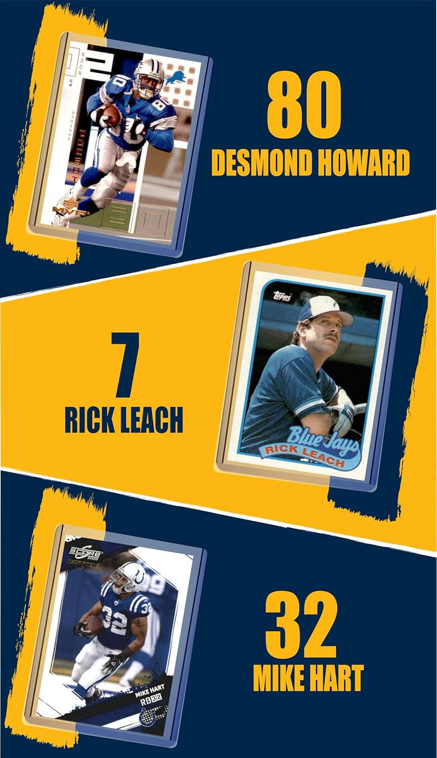 The Michigan Wolverines are red hot! This lot of eight 2006-2022 Michigan Wolverines football cards makes a great gift and collectors item for any Michigan Wolverines fan. Guaranteed to include one card each of Tom Brady, Charles Woodson, Braylon Edwards, Desmond Howard, Chad Henne, Rick Leach, Jim Harbaugh , Mike Hart, and John Navarre. Exact card of each player varies and may include cards in past team uniforms. All cards are in near mint to mint condition and are shipped with each card in its own individual soft sleeve and top loader or semi-rigid sleeve. Comes with bonus gift bag and two wristbands in team colors, making it the perfect gift for the youth fan. WRISTBANDS AND GIFT BAG INCLUDED ARE UNBRANDED GIFT ITEMS AND DO NOT CONTAIN ANY TEAM OR LEAGUE RELATED BRANDING, LOGOS, OR TEXT.