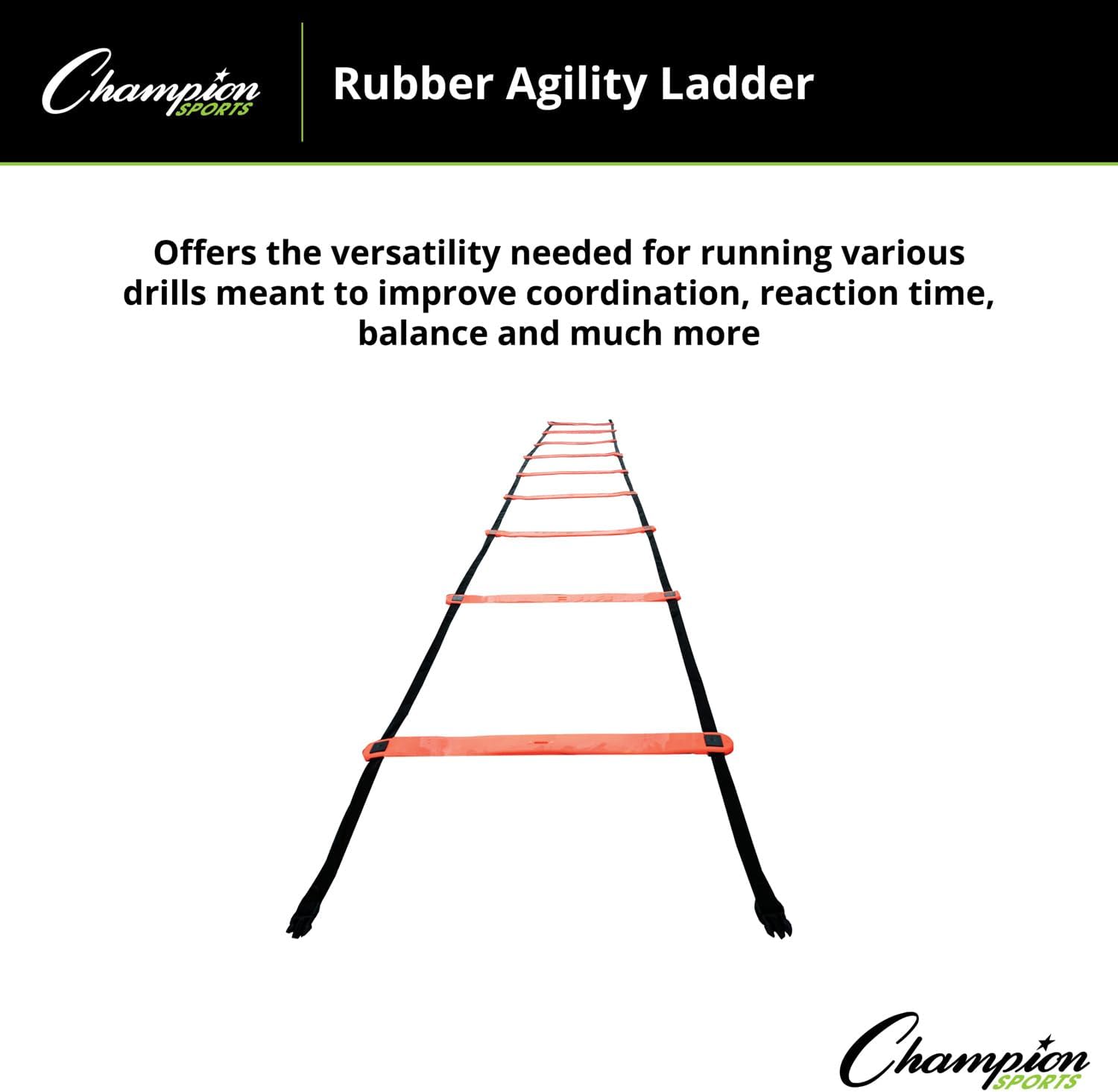 The Champion Sports Rubber Agility Ladder is a useful training tool designed for indoor use. Its non-slip soft rubber rungs provide a safe and effective way to improve speed and agility without damaging your floors. The ladder is 13'L and features adjustable rungs for customizable spacing, allowing you to create a variety of training patterns. To increase the challenge, multiple sets can be joined together for more complex drills. With its durable construction and versatile design, the Champion Sports Rubber Agility Ladder is a valuable addition to any athlete's training regimens.