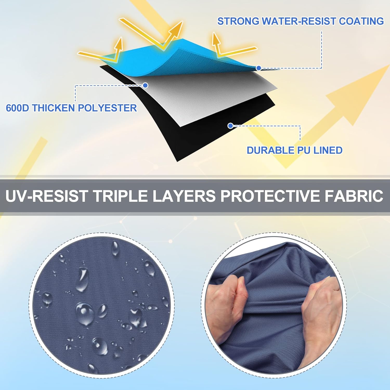 Features:Our upgrade Bimini Top Canopy Cover Top is made from Marine-grade 600D polyester fabric. Keep your bimini top dry and tidy, deal with sunshine and seawater easily.Light hole design on top, with reliable zipper closure, quick install and dismantle, saving your precious time.Windproof with durable adjustable drawstring, fit securely and firmly on your folding bimini top.Specially add 1.2" girth for easier storing your bimini top canvas. Universal for most 3 Bow and 4 Bow Bimini tops.Good replacement choice for family boater, fisherman or anyone who spends time on a boat. Ensure your Bimini top canopy maintain good appearance the whole year.Specification:Fabric Material: 600D Marine-grade PolyesterWarmly Note:Please confirm following dimension before buy, thanks!Mounting Width: The distance between your boat's main mounting points. (NOT boat's top cover' width)Boot Max. Length: Your bimini cover's precise width.Storage boot only! Frame, canvas cover, hardware and rear poles are NOT included.Package Includes:1 Pcs Bimini Top Storage Boot with Light Hole