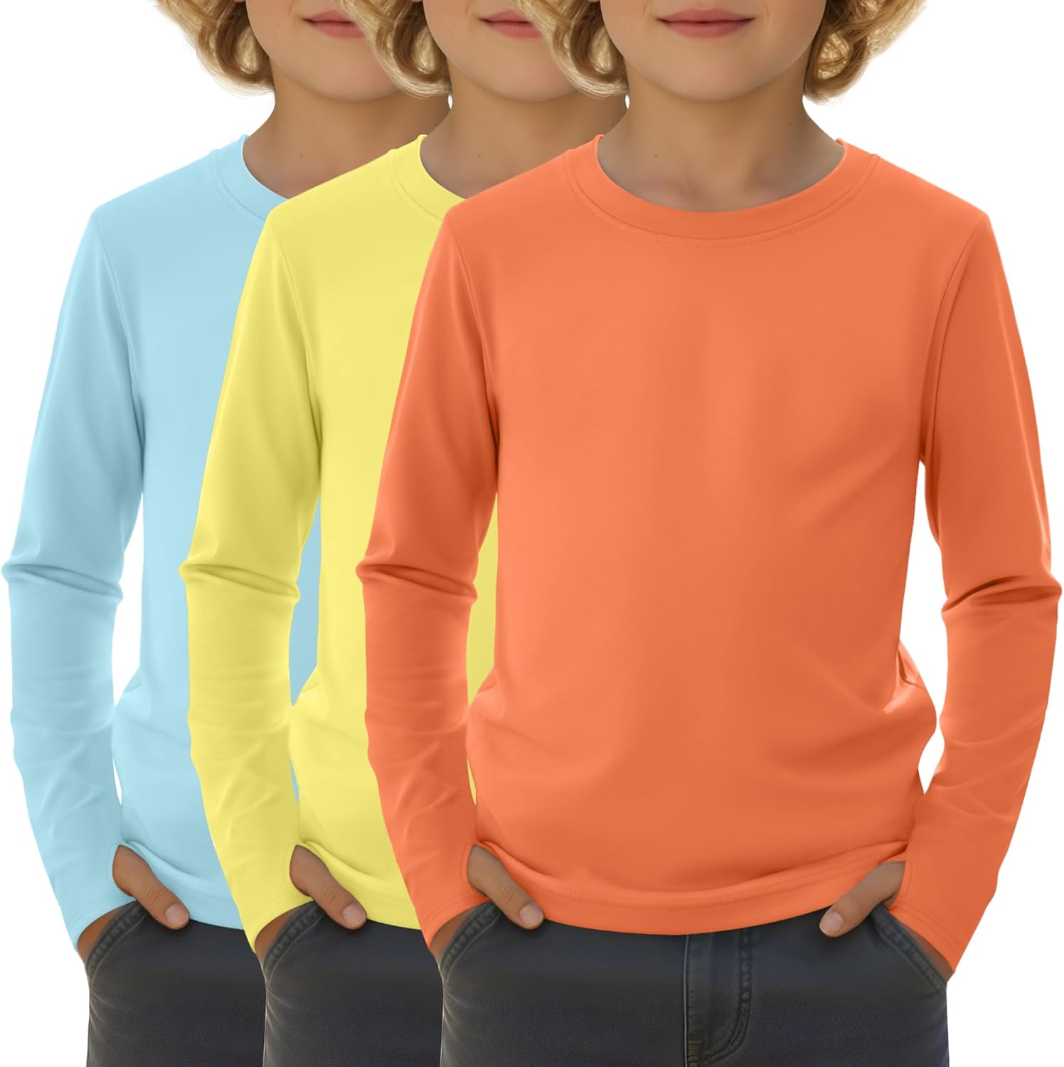 Features: Size selection: Please check our size chart before you place order for comfortable wearing. Clothing maintenance: Machine washable or hand wash with cold water. Do not bleach / Lay flat to dry / Do not iron at high temperature. Material: 88% Nylon, 12% Spandex Package includes: 3 x Boys rash guard sun swim shirts Notes: Manual measurement, please allow slight errors on size. The color may exist a slight difference due to different screen displays