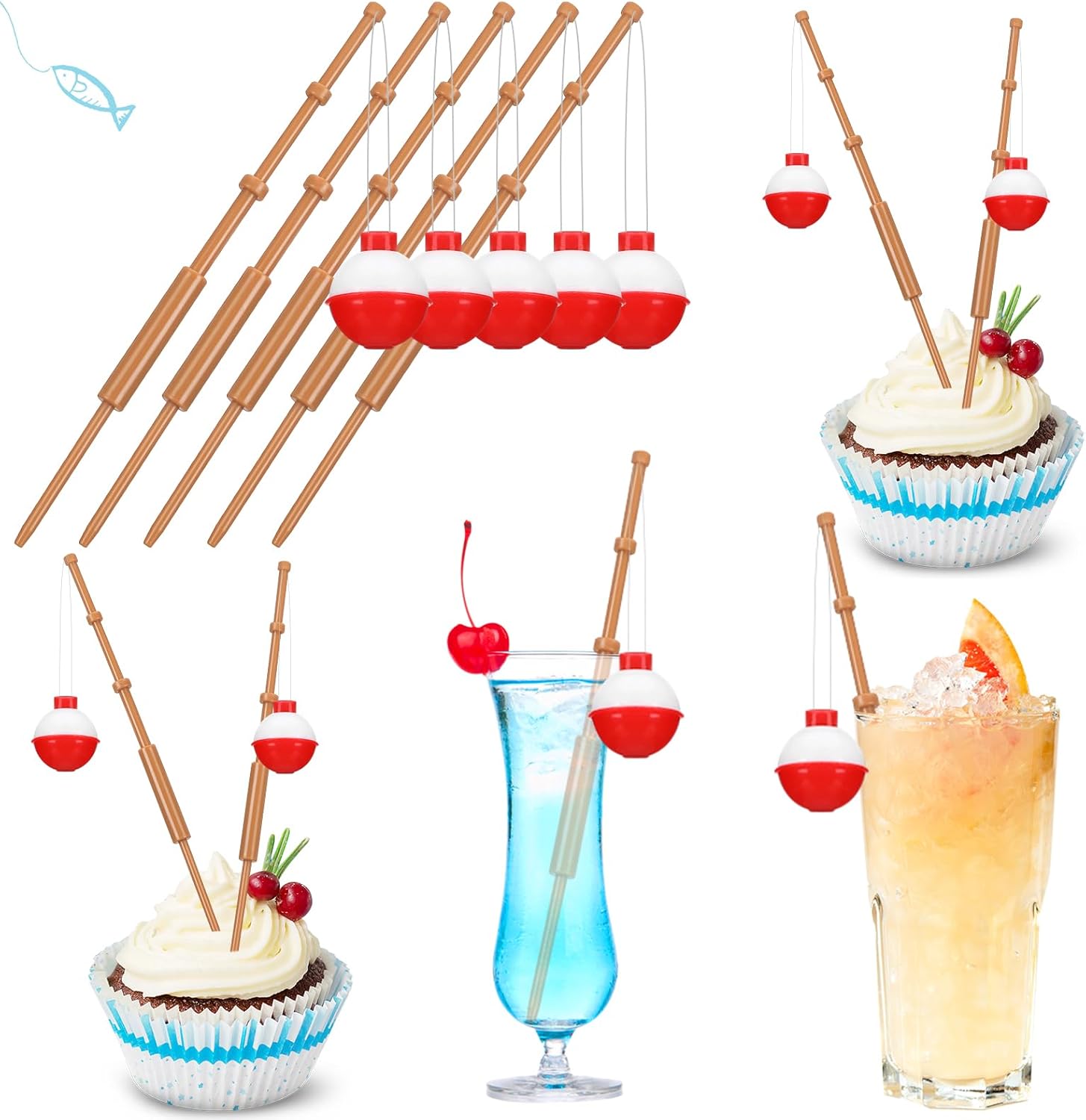 Features: Our priority is your safety. Hence, all the components are made from food safe plastic, causing no harm when decorating your cupcakes. Enjoy your desserts without any worry. Designed to mimic fishing floats, they not only add a touch of whimsy to your desserts but also act as a conversation starter amongst your guests. Make your cupcakes the talk of the event with these unique toppers. Specifications: Material: plastic Color: multicolor Size: about 6.3 inches/ 16 cm Package includes: 24 x Fish bobber cupcake toppers Notes: Manual measurement, please allow slight errors on size. The color may exist a slight difference due to different screen displays