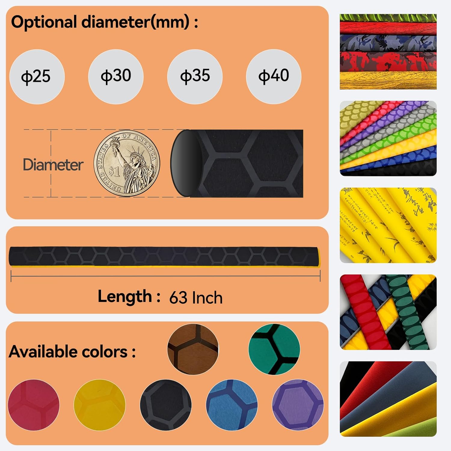 Professional heat shrink tubing for sports gear & tools—durable, moisture-resistant, seamless fit, easy installation, no residue, with honeycomb patterns.