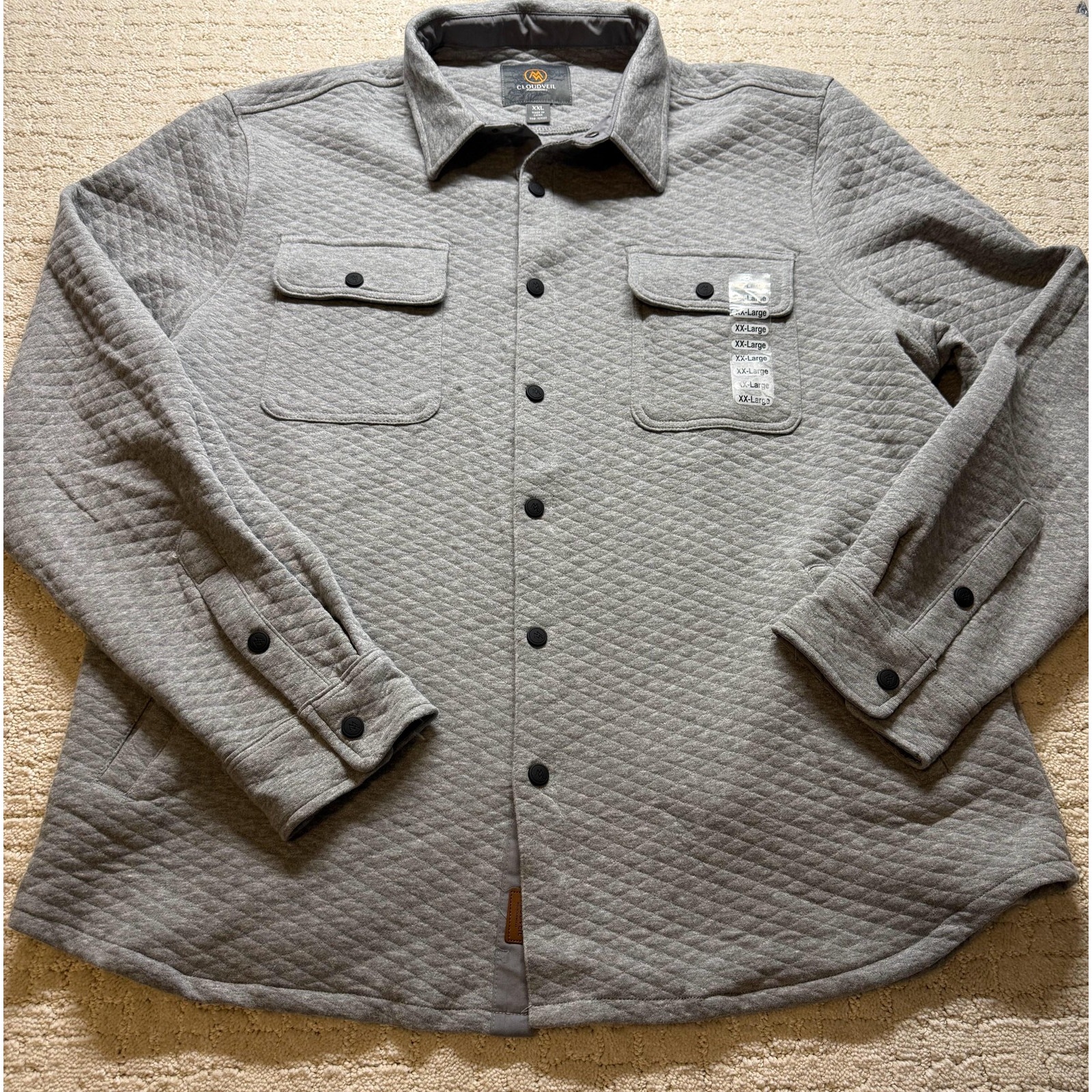 Cloudveil Jacket Mens XXL Gray Quilted Knit Shirt Jacket Snap Front Pockets